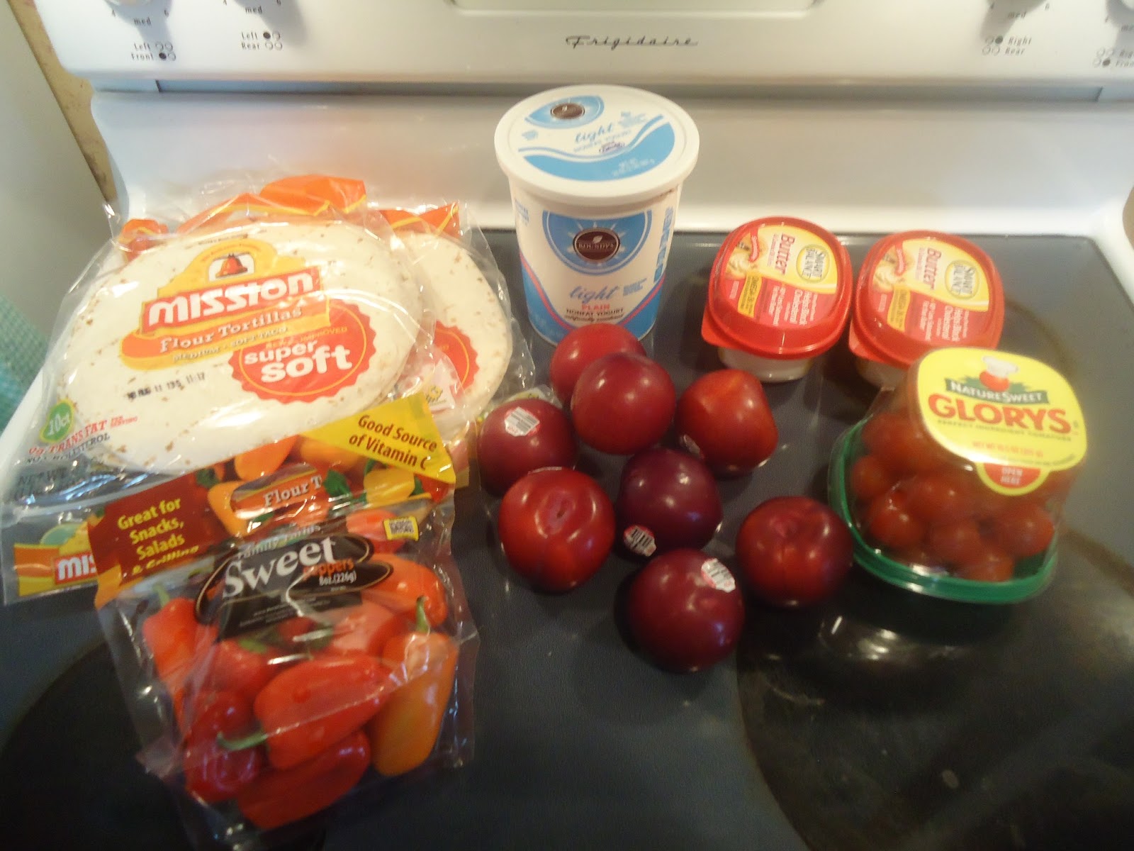 I even have groceries left over from last week because my father-in-law decided to treat us to lunch out on Friday and their visit was shorter than we had originally planned. Not so good that their visit was shorter but wonderful that we have food left. And wonderful that we got to visit for the time we did! The watermelon we bought was bigger than we thought so it worked for both potlucks without having to use any of the other fruit! I like that too.